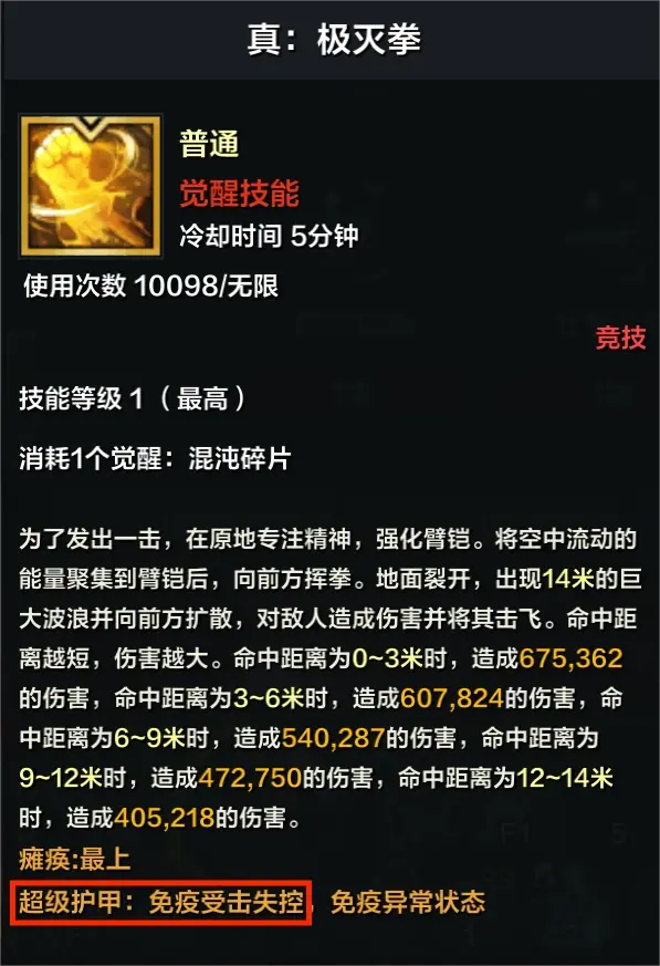 免疫异常状态(三级):具有该状态的技能释放时不会被任何控制攻击中断。