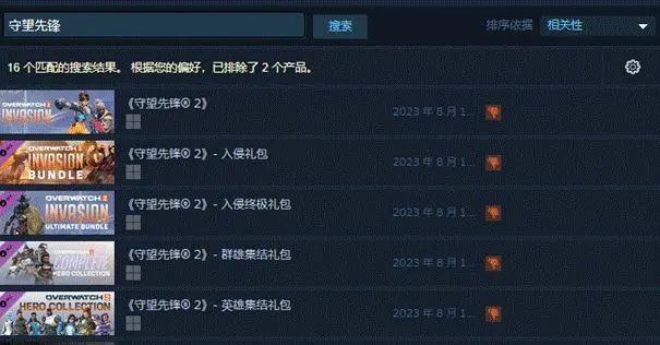 在Steam平台中搜索【守望先锋】,我们就可以在找到守望先锋2游戏了。
