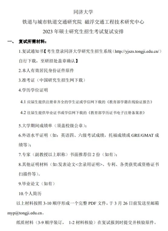复试内容:轨道交通学科综合