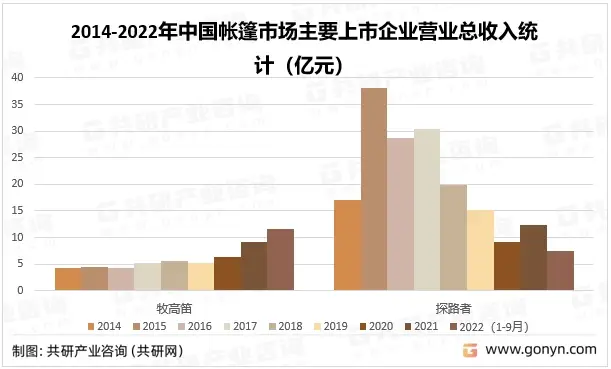 2014-2022年中国帐篷市场主要上市企业营业总收入统计(亿元)