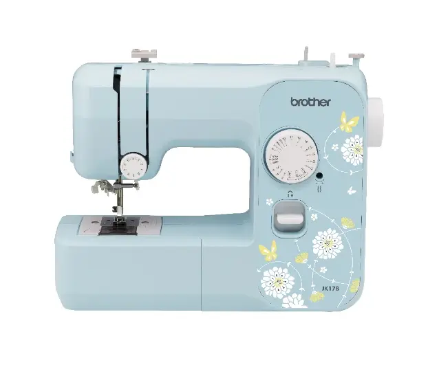 蓝色焕彩小精灵,基础入门,穿线轻松。17种内置针迹,LED缝纫照明灯,快速穿线,快速梭芯绕线。
