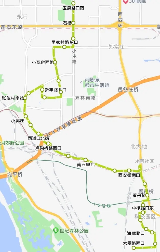 首末站:玉泉路口南-六圈路西口