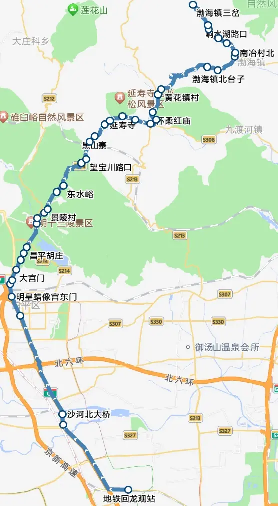 首末站:地铁回龙观站-渤海镇三岔