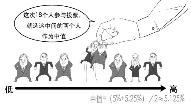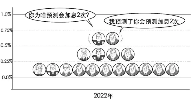 每名委员不仅需要根据自己对经济前景判断,还需要考虑对其他委员的认知,综合预测出未来会实行的利率。