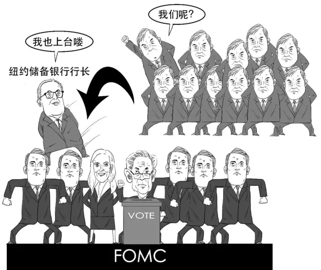 美联储理事会的主席、副主席和理事全部是FOMC成员,拥有永久票权,最多拥有7张票。