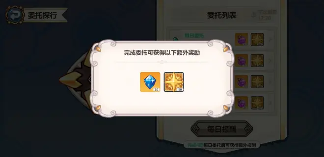 完成满每天活动外还可以额外获得水晶+等级积分 (任务会刷新不同类型委托) 400(+50)积分/每日