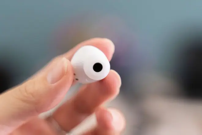 QCY ArcBuds真无线主动降噪蓝牙耳机采用入耳式设计,佩戴起来还是比较舒适的,我耳朵比较小,一般的耳机戴起来都会有压迫感,但是这款耳机没有这种感觉,这是我比较喜欢的。而且采用了人体工程学设计,可以很好地贴合我们的耳道,并且在佩戴时会有一定的倾斜度,增加了稳固性和舒适性。另外它重量也比较轻,只有4.4g,带上去真的无感。