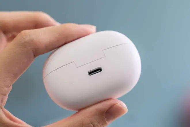 在耳机的顶部位置,印有 QCY的品牌 LOGO,有充电指示灯,Type-C接口还是比较方便的。
