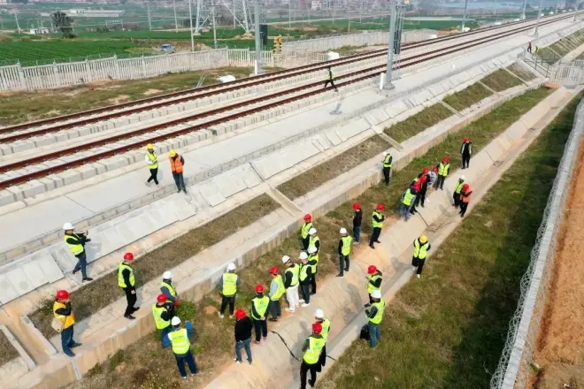 在新建福厦铁路全线上下奋力冲刺克缺整治“保开通”的关键节点,3月2日,新建福厦铁路厦门指管段首个路桥典型病害整治现场观摩会在中铁上海工程局新建福厦铁路5标项目15#路基、东园特大桥举行,东南公司厦门指挥部、厦门工务段、铁四院专家、各施工单位及监理单位负责人共计52人到场观摩,这也是全线首次举行典型病害整治现场观摩会。本次观摩会就桥梁、路基、声屏障等克缺整治进行交流,与会领导及专家对福厦铁路5标项目克缺整治方法和施工工艺给予了高度评价。