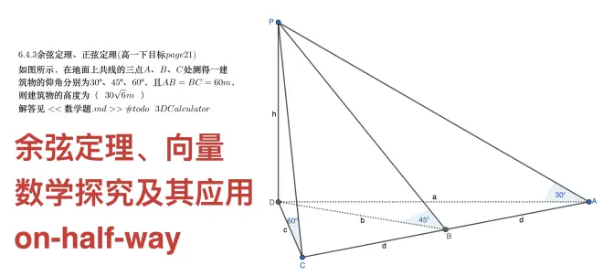 高一数学下册中6.4.3节学习了余弦定理和正弦定理,并通过向量法进行了定理证明。同步目标练习提供了如下一道关于数学建模与数学探究的理论实践结合的习题,值得讨论。题目如下: