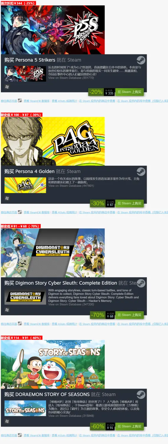 5、《女神异闻录5:乱战 魅影攻手》等48款游戏新史低,2021年日本黄金周特卖折扣速推