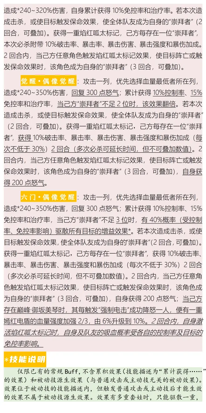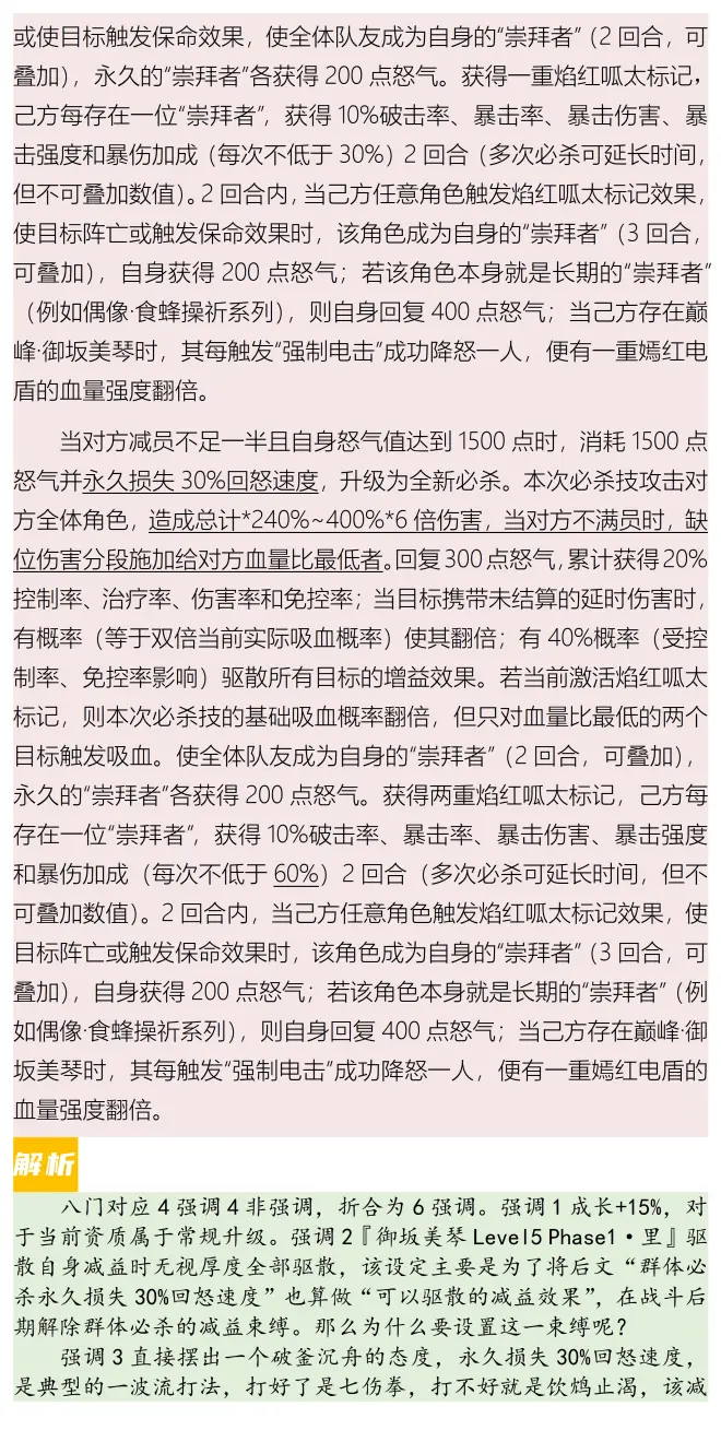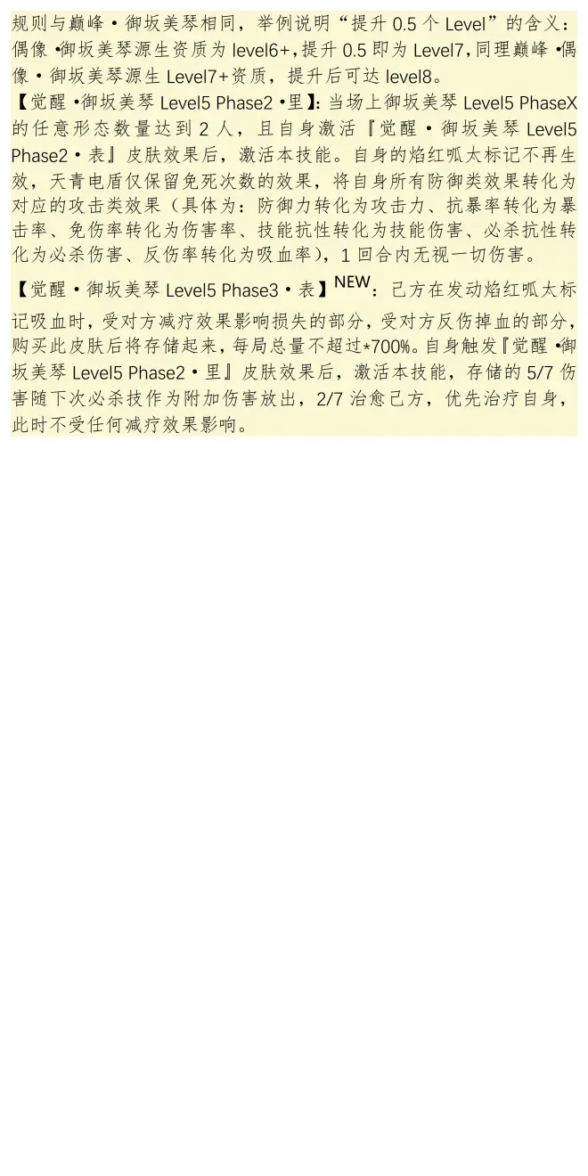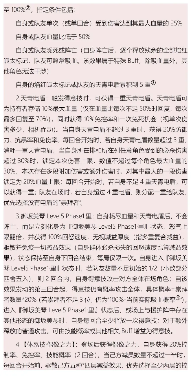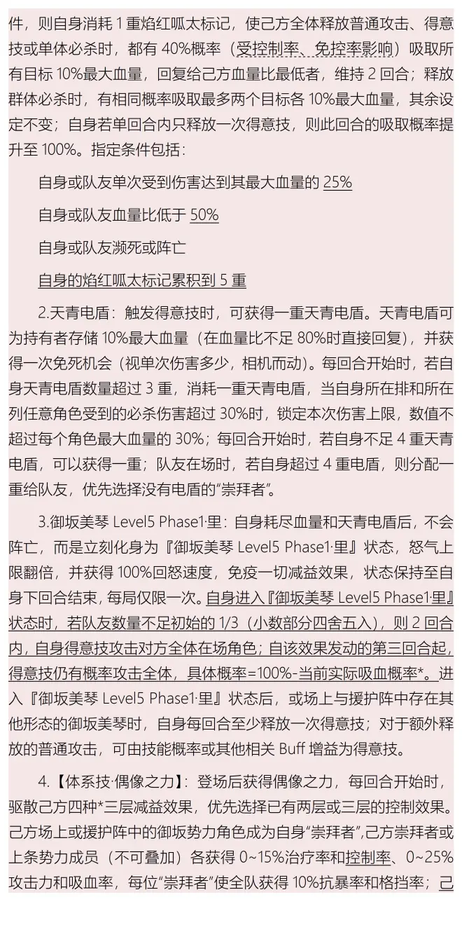 此投稿的最初版本修订于2023年3月16日,因内容比较完善,至5月17日投稿时没有再次修订,此投稿发布之日,就是本角色第二轮精修的开始时间,待本轮精修完稿后,会修改本期投稿的图片。由于技能设定已臻于成熟,第二轮精修的重点工作将与刚刚重修的御坂美琴设计稿一样,文本修改的总量最多占总篇幅的5%。