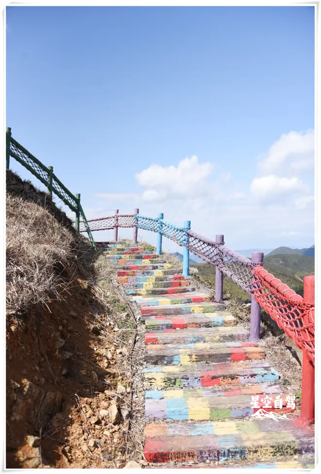 连上山的石阶都是彩色的,为了让草场有看头,设计师那是费尽心思了;