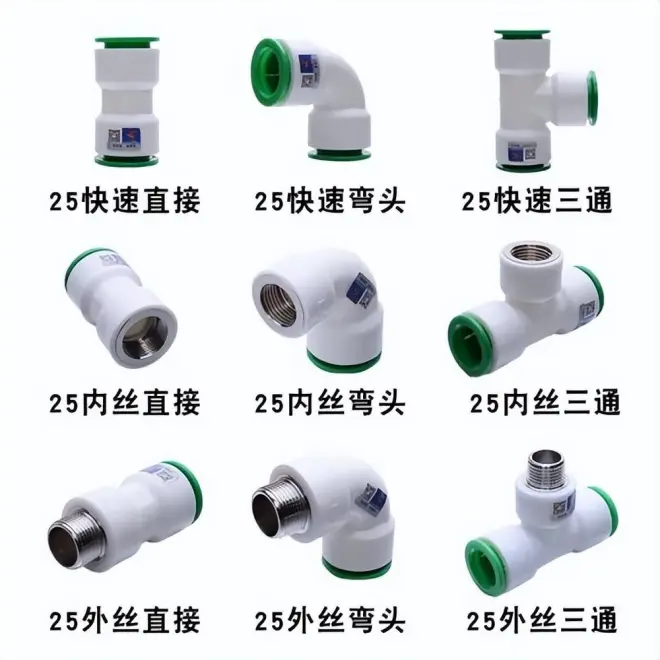 选定了合适型号的PPR管材,我们还要购买各种管件才能组成供水管路。由于管件过于繁杂,我来简单介绍下常用的。