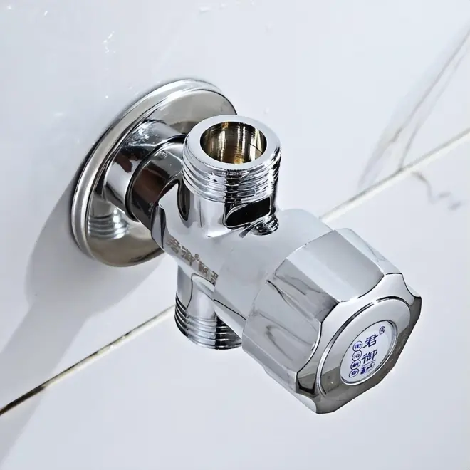 另外水路中角阀也必不可少,用于软管与水管连接。角阀需要安在内牙弯头或内牙三通上。软管一头连接角阀一头连接水龙头,角阀开关可以单独控制这个供水点。