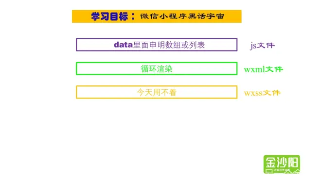 内容包括啥呢,首先还是照例,先来剖析剖析这个程序员的黑话体系,要展示这个一堆数据在小程序上面,我们得事先准备一些数据,在哪里准备呢,哎呀,就在这个js文件里面塞上这些个数据啊,如果用黑话表达,就是申明数据。而这个数据的类型呢,无外乎数组或者列表。有人问啦,这个数组和列表有啥区别呢,一句话解释一下啊,列表就是复杂一点的数组。