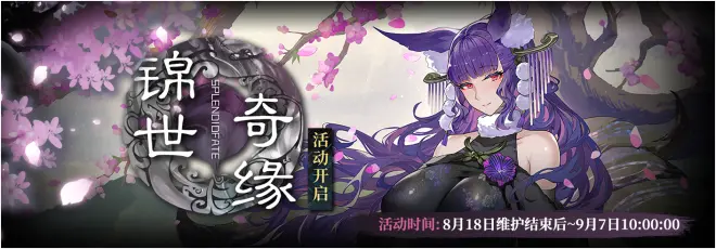 1. 【锦世奇缘】活动限时开放!活动时间:8月18日维护结束后~9月7日04:00
