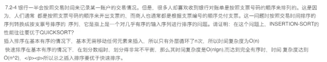 是的,对于将按交易时间排序的序列转换成按支票号排序的序列的问题,使用INSERTION-SORT往往比QUICKSORT更加高效。