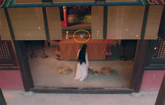 剧中两处总计出现了4款香炉,其实仔细一看实则为同类香炉,这种香炉叫“三足鼎式炉”,其材为瓷,其色青灰,其型为底部有三足、鼓腹、高束颈、立耳、有盖或无盖。