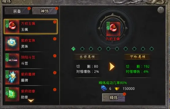 1.精炼玉佩可以提升切割与对怪增伤属性。