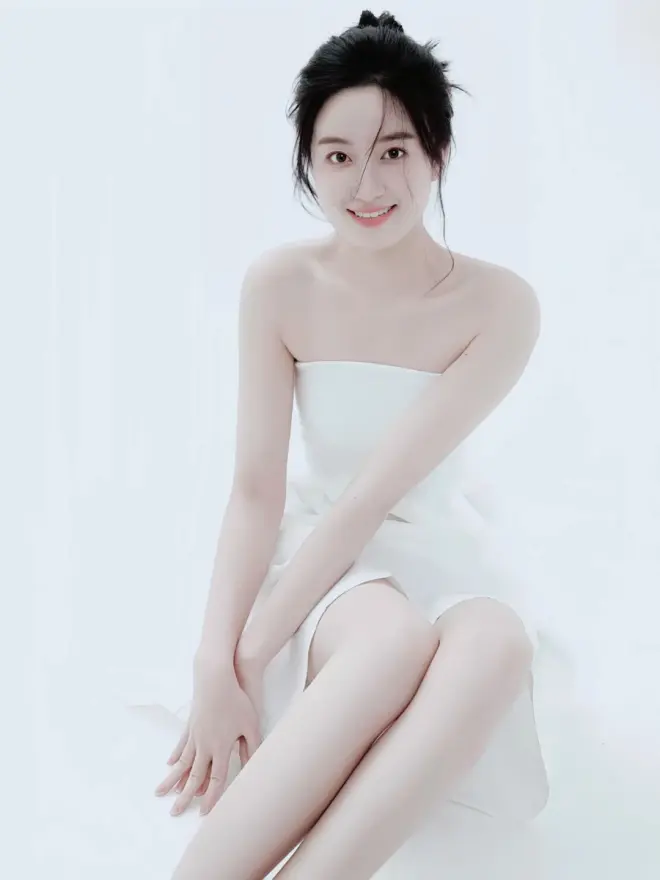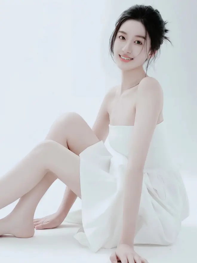 牛奶少女白色抹胸连衣裙纯欲私房写真,身材性感皮肤白嫩光洁