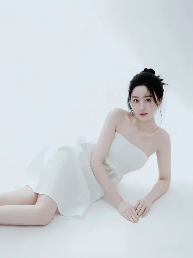 穿着纯白抹胸连衣裙坐着拍照的时候,如果女生的身体过度前倾,拍出的效果会显得没有气质。可以指导女生让双脚自然悬空,并稍微向后呈现仰靠的姿态,舒缓地抬起手臂轻轻撩拨发髻,这样的姿态立刻提升气质,并且十分自然优雅。