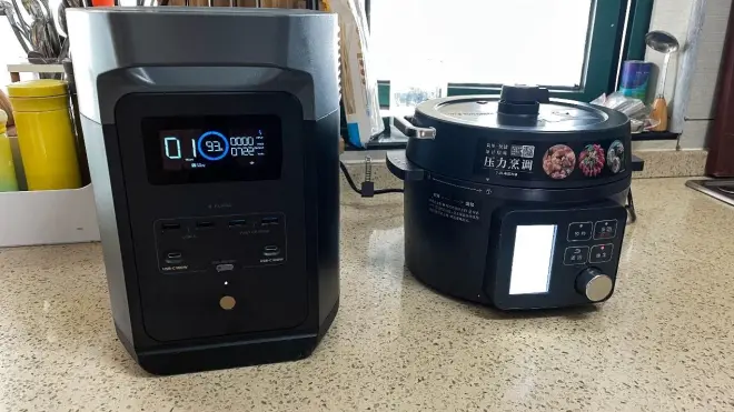 有的小伙伴也许要问了,我露营踏青的时候,想要带个高压锅煮米饭,这个到底行不行?毕竟电饭煲的饭孩子更爱吃。答案当然可以了,德DELTA 2最高可以支持2400W高功率输出,我家这个800W的电高压锅根本没压力,再说了煮饭20分钟就够了,放心带上吧。