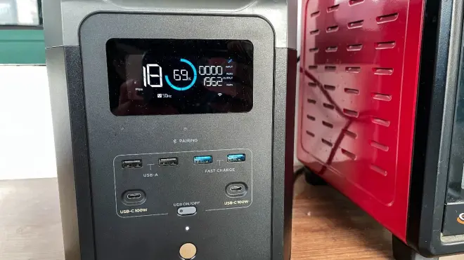 我测试了下家里高功率的烤箱,德DELTA 2在X-Boost的加持下,能够将功率提升至将近2000W,在设备工作状态下没有特别的变化,只是散热时风扇的声音感觉会稍微大一些,同时续航时间会下降比较明显。