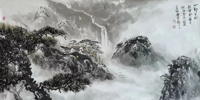 台启中先生的山水画有石涛的清雅之韵,有清四王的造形功力,小品画有黄宾虹的笔墨神气,没骨纯墨写意山水更有元代黄公望富春山居图的韵味。只有静心品读才能得知其中之品味,只有细细地品读才能有物我相融的真切体验。看一眼他的画就知道是台先生的大作,它的个性、特色鲜明。这是每个画家都孜孜追求的至高境界,但不是每个画家都能至达的理想境界。读他的画正如唐顾况在《范山人画山水歌》中所言:山峥嵘,水泓澄,漫漫汗汗一笔耕,一草一木栖神明。忽如空中有物,物中有声;复如远道望乡客,梦绕山川身不行。