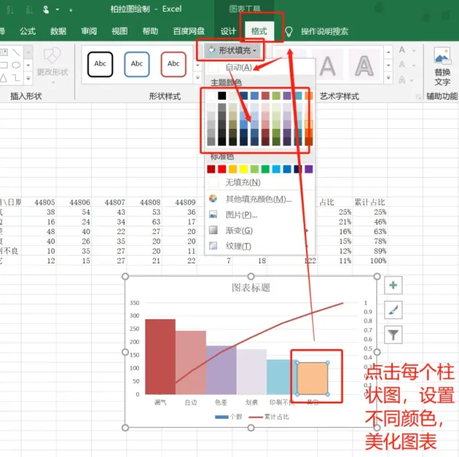 步骤8:单击每个柱状图,可以设置不同的颜色便于区分。
