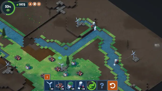 除了“逆向建造”的有趣点子,《伊始之地》最吸引人的部分还是在于恢复环境生态的过程中经历的各类气候现象。游戏的难度设置相对循序渐进,在最开始的几张地图,玩家只需要考虑湿度指标,通过不断扩大草坪、建设加湿器来增加空气湿度。但随着游戏向前推进,玩家需要考虑的问题也越来越多,温度、污染度等气候指标陆续加入游戏。
