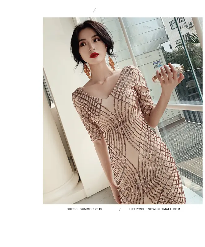 » 晚礼服女新款宴会名媛气质高贵性感修身短款包臀主持人礼服连衣裙