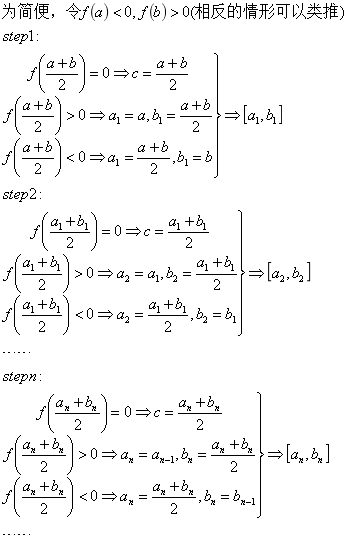 Bolzano-Cauchy第一定理:函数f(x)在闭区间[a,b]内定义且连续,又在这区间的两端点处取得异号的数值。则在a与b之间必能取出一点c,在这点处函数等于零。