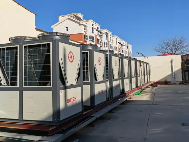 2022年11月,河北省泊头市一小区启动了集中供暖改造项目,弃用燃气锅炉供暖系统,采用了20台60HP的中广欧特斯商用热泵空调(超低温两联供机组)为采暖源,打造了一套绿色低碳、高效节能的热泵供暖解决方案,为7万多㎡供暖面积的社区提供采暖服务,有效缓解了居民冬季供暖费用高的压力,让600多户居民迎来了高性价比的冬季“暖生活”。