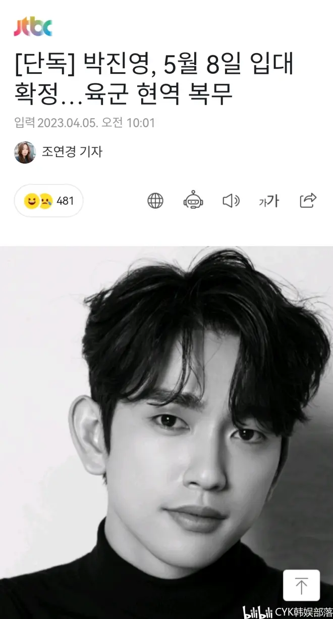 业界5日称,朴振英最终确定将于5月8日入伍。