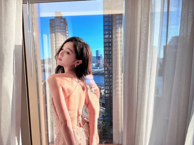 吴宣仪白色吊带连衣裙大长腿性感写真