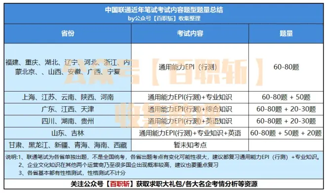 中国联通2023招聘笔试考情解读题型预测历年真题分析如下: