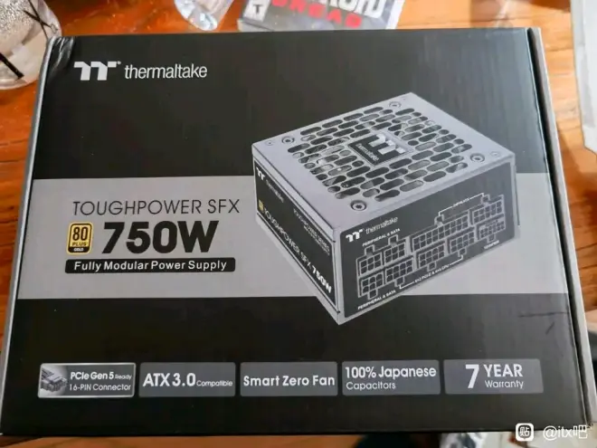 注:此专栏是直接从贴吧移植过来的,行文不太符合专栏的文风,赶鸭子上架、来不及写评测也没条件写电源的详细评测,望大家见谅。 TT的钢影750W SFX电源,学名是“TT Toughpower SFX 750W”,貌似在去年就发布了。这是目前唯一支持ATX3.0/12VHPWR的750W标准尺寸SFX电源,当前仅在TT官网有售。售价不便宜,和原价的海韵SPX750/海盗船SF750一样是1300元。(