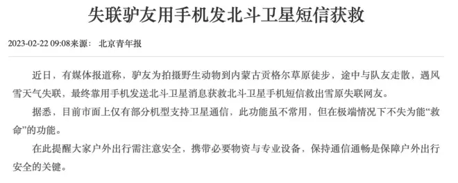 而这一体验也在前一段时间被证实可以发挥重要作用,有一名驴友在内蒙古贡格尔草原徒步时与队友走散,通过华为Mate50系列手机的北斗卫星消息功能将自身定位发送给队友,后被成功找到。就像华为终端BG CEO余承东曾经所言,这个功能日常几乎用不到,但可能一生用一次,一次续一生,在关键时候发挥很重要的作用。