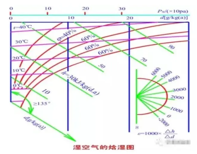 在热力学中,焓的物理意义是指在特定温度下物质所含有的热量。在空调工程中,最常见的空气处理过程是冷却或加热空气,经常会碰到诸如将空气从30℃冷却到20℃需要多少冷量,或将5℃的冷空气加热到20℃需要多少热量之类的问题。