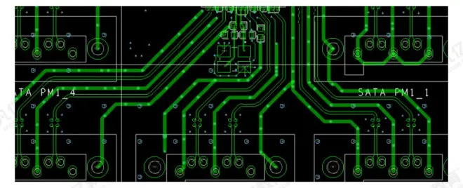 2)SATA是高速差分,包含一个发送讯号对和一个接收讯号对,使差分对的走线长度保持一致非常重要,不匹配的走线长度会减少信号之间的差值,增加误码率,而且还会产生共模噪音,因而增加EMI辐射,误差要求按照<6mil的要求,差分对内等长需按照差分等长处理规范,如图2所示。