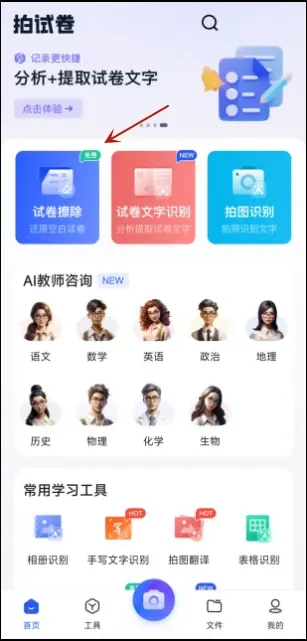 第一步:在这款软件上找到试卷擦除功能并选择。