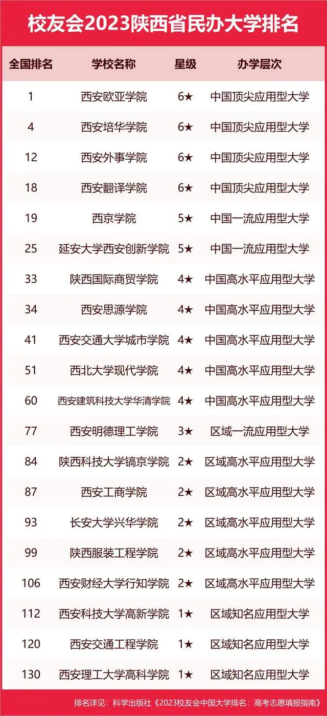 在最新2023中国大学分类排名中,武昌首义学院、文华学院、上海建桥学院位居2023中国民办大学排名I类前3强;三亚学院、广州南方学院、四川大学锦江学院位列2023中国民办大学排名Ⅱ类前3强;西安欧亚学院、昆明城市学院、武汉学院位列2023中国民办大学排名Ⅲ类前3名。