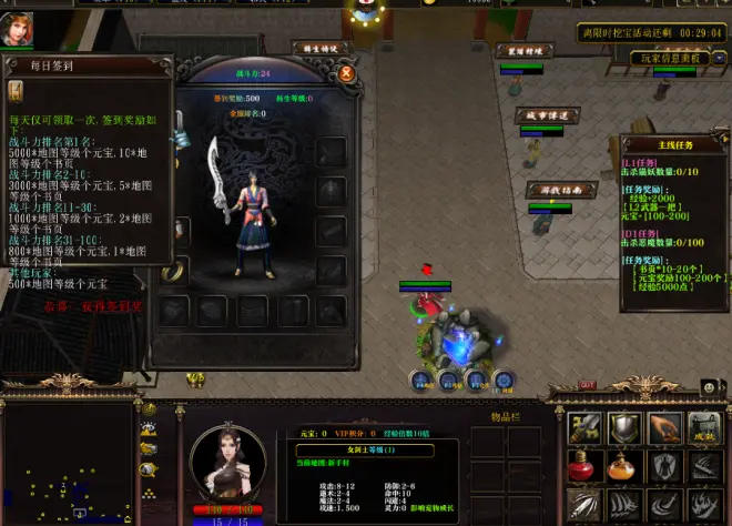 本图的玩法还是相当简单的,出生所在的主城就是日后活动的中转站,所有的功能NPC都汇聚在这里。小鸡先奔向接取每日任务,不过需要击杀的怪物等级貌似都挺高的,不是刚建的角色可触及的。