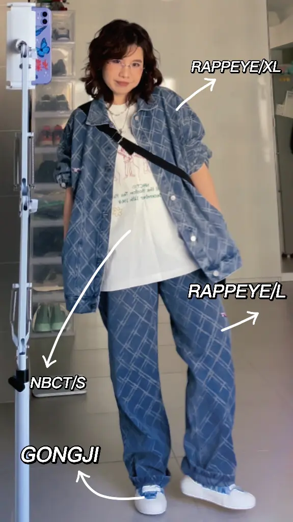 3RAPPEYE网格牛仔套装春季新款美式休闲上衣宽松街头满印夹克外套【包邮】