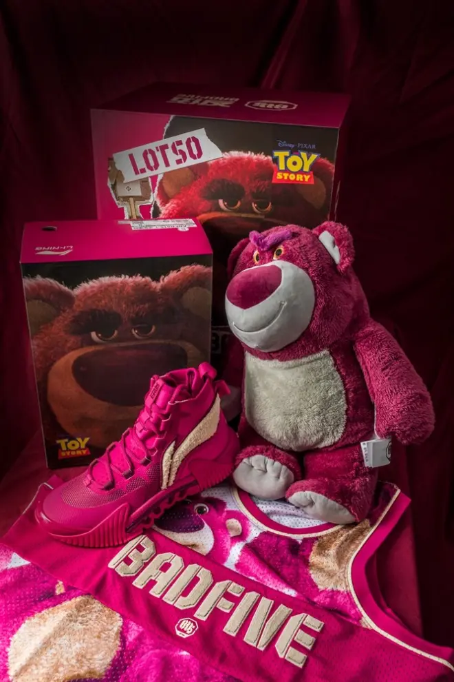 这双全新的李宁反伍2代实战篮球鞋“迪士尼”联名款,准确的说是李宁携手迪士尼,以迪士尼旗下的动漫电影《玩具总动员》为设计灵感来源而推出的特别款。具体的说,这双李宁反伍2代实战篮球鞋“迪士尼”联名款其实是参照了电影中“草莓熊”的荧幕形象。