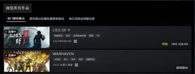本次参与活动的游戏其中就有包括NEOWIZ的魂类动作游戏《匹诺曹的谎言》,Nexion的PVP动作有序《Warhaven》、格斗家模拟游戏续作《潘趣俱乐部2:快进》等。在新品节活动的网页上也进行了对应游戏的分类,可以更方便的让玩家找到自己感兴趣的作品。此外还有基于玩家的游戏历史经历推荐的发现页队列,帮助玩家发现更多自己可能喜欢或感兴趣的游戏。