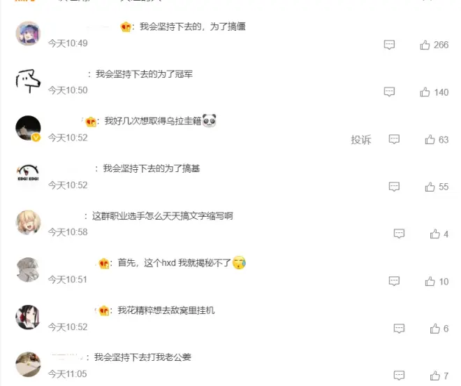 翻看评论区,万千LPL粉丝脑洞大开,纷纷写下自己对Huanfeng韩服新ID的解读,有观众写道:我会坚持下去的,为了冠军!有观众疑惑道:这群职业选手怎么天天搞文字缩写啊。而获赞最多的热评是:我会坚持下去的,为了“搞僵”。