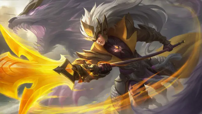 7、亚联-李靖 就是这个赛季的当期英雄,一进游戏那个蓝头发就是他,我就不放图了。他和亚联技能不像玩法像,都是狂战士,越打越强,有位移但是由于前摇长,导致这英雄很笨,回血很猛伤害很高,但是需要暖机,容易被拉扯。 二、打野篇 1、宫本武藏-踏破千军花木兰 木兰是一位位移控制不可选中都有,兼具黏人收割追击抗伤的半肉型打野,定位类似宫本。木兰被动:木兰使用剑、戟交替攻击(类似于lol腕豪),并挂上对应标记。剑戟标记同时存在时,造成额外伤害,回复木兰能量条(木兰无蓝条)。 一技能剑形态横扫,释放两次可强化为斩杀;戟形态远程突刺,释放两次后可强化为直线突刺击飞。 二技能类似宫本2,快速位移,期间可使用一技能横扫 大招可以跳到对方头上连续斩击,获得护盾并且破甲。 连招:21 a1 31a