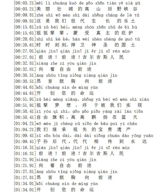 [00:00.01]jí ěr jí sī sī tǎn ɡuó ɡē(zhōnɡ wén tián cí bǎn)